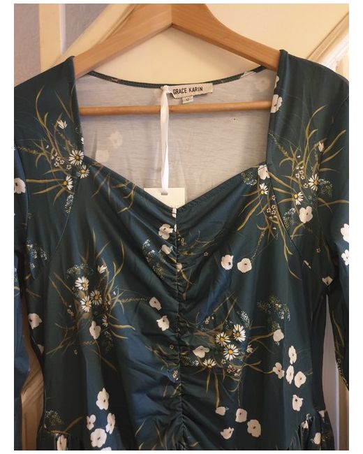 Maxi Dress Deep Sweetheart Neckline Pleated 12 UK