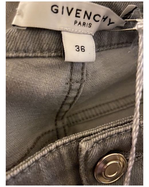 Givenchy jeans 98% Cotton 2% Elastane in grey colour. Made in Italy. Leg opening side to side is 5.3"(13.5 cm). High rise taken from the crotch centre to the top of waistband is 8"(23 cm). of waistband side to side is 13.75"(34.8 cm).