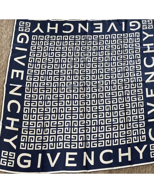 Square in silk twill with contrasting 4G all over pattern. Givenchy signature along the edges. Rolled edges. Colour: Blue/white Composition: 100% silk. Dimensions: 35.5in. x35.5in. Country of origin: Italy Bought from tkmaxx. UK buyers only.