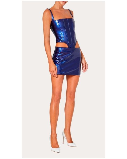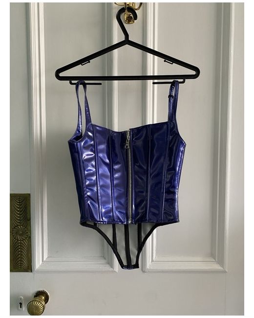 Corset top. Coated fabric. Material: 59% polyurethane/41% polyester. Boning both front and rear. Exposed rear zip closure. Cut for a close fit. B 32” W 27”