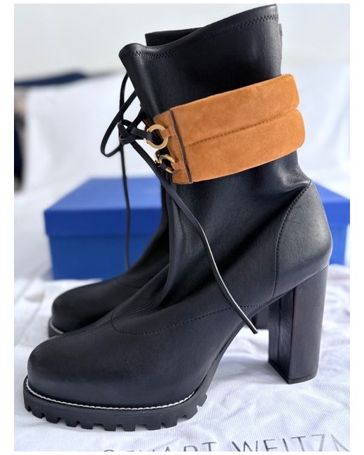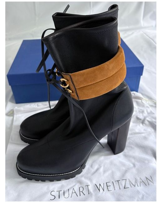 Elevate your footwear collection with these striking Stuart Weitzman platform boots, a perfect blend of style and comfort. The multicoloured leather upper adds a vibrant touch to any outfit, while the robust block heel provides a stable lift. Sized at a UK 10 / US 12, these boots are designed to make a statement.Crafted for the fashion-forward woman, these boots feature a contemporary platform style that's both versatile and chic. Whether you're dressing up for a night out or adding an edge to your daytime ensemble, these boots are sure to be a conversation starter.