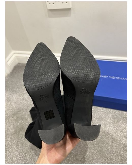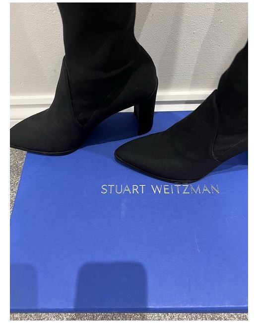 Elevate your shoe game with these Stuart Weitzman Thigh High Ultra Stretch Boots. The sleek black design is perfect for any outfit, while the slip-on style makes them easy to wear. These boots feature a stretchy polyester upper material, making them comfortable and flexible for all-day wear. With a UK shoe size of 4.5, these boots are perfect for women who want to make a statement with their footwear. The boots are branded with Stuart Weitzman's name, adding to their appeal. These boots are ideal for any occasion, whether you're dressing up for a night out or running errands during the day.