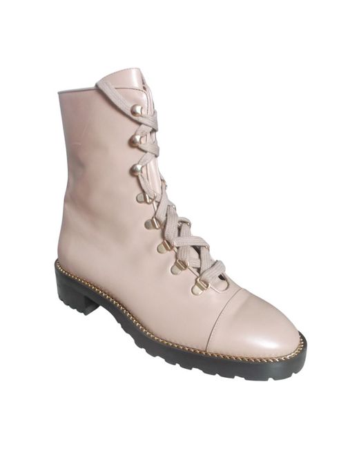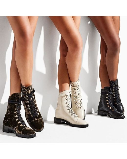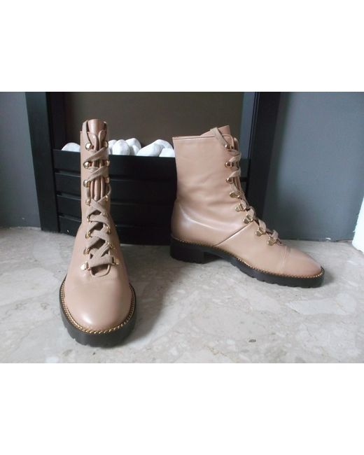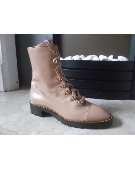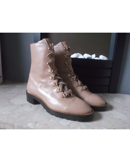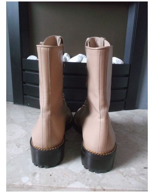 Stuart Weitzman KOLBIE Ladies' Beige Leather Gold Chain Trim Lace Up Combat Boot Size EU 37.5 UK 4.5. Condition is New without box.
