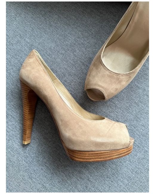 Stunning pip toe shoes in beige suede. Original box and dust bag included.