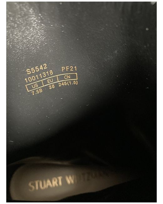 Elevate your style with these stunning Stuart Weitzman ancle boots. Crafted from premium quality leather, these boots are a must-have for any fashion-conscious woman. The slip-on design makes them easy to wear, while the round toe shape provides a comfortable fit. Perfect for any occasion, these boots are versatile enough to be worn for work or play. The flat heel height ensures that you can wear them all day without any discomfort. With a sleek black colour and no pattern, these boots are timeless and will never go out of style. Add these beautiful ancle boots to your wardrobe today! Size US7,5 or EU 38 about UK 5 Havent been used as quickly outgrown