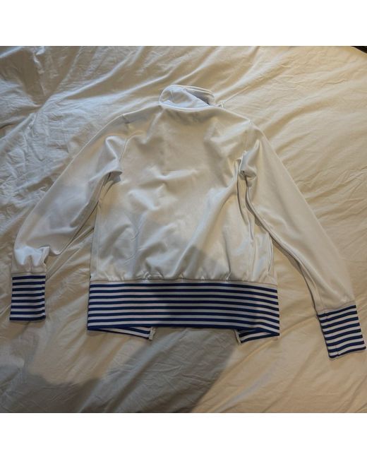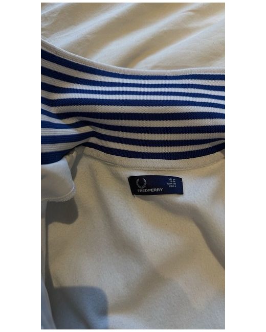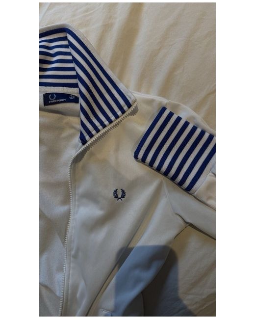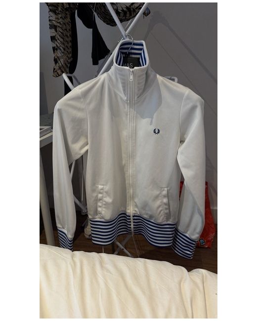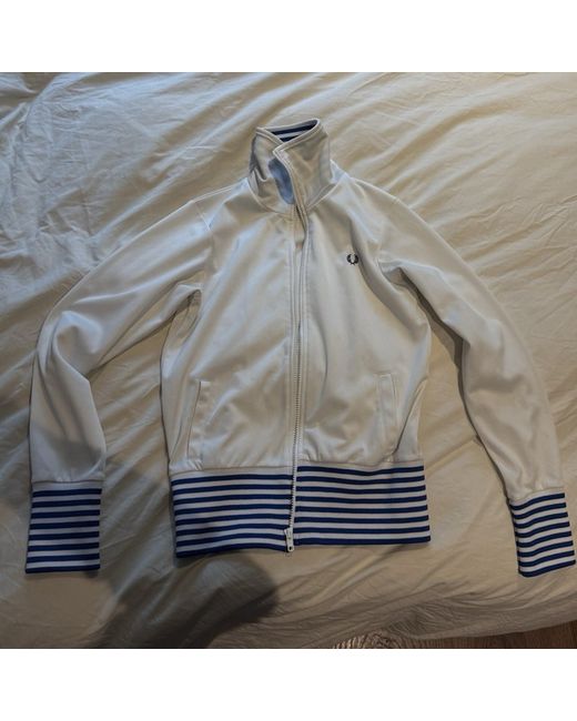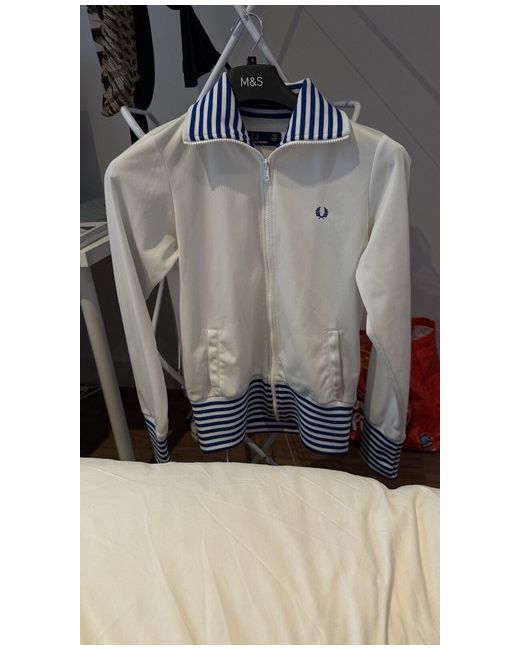 Fred perry white track jacket with stripey blue cuffs and collar, bought on here, selling as doesn't fit me. very good condition no marks. Size women's 10