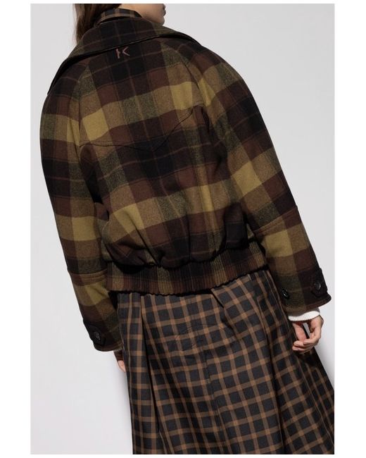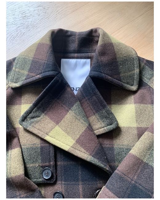 KENZO Check Brown Coat Jacket size M. Brown, yellow and black jacket from Kenzo. Crafted from wool woven with an all-over check pattern. double-breasted fastens buttons, long sleeves, two flapped pockets with buttons and an elasticated bottom hem. NON DAMP, NON SMOKING AND NON PET OWNING HOME
