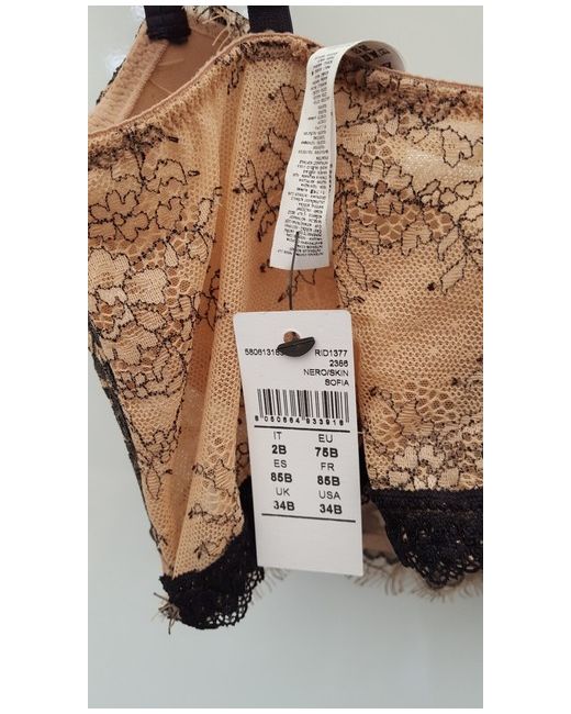 This is BNWT Intimissimi Flower Ballet Bra, Model Sofia, Nero & Skin, Size 34B (UK), Front Lace:- 62% Polyester, 38% Polyamide, Back Lace:- 70% Polyamide, 16% Elastane, 14% Polyester, Inside Cup:- 58% Polyester, 42% Cotton, see attached photographs.