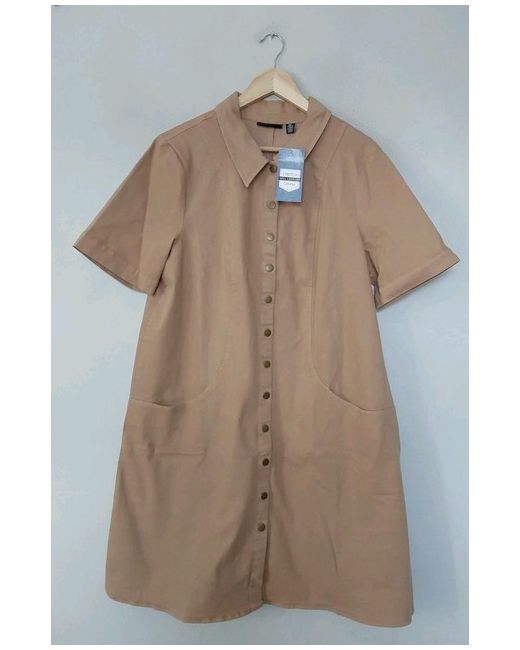 Nina Leonard Elbow Sleeve Collared Button Through Dress 2XL Chest 46" Length 40" Tan Front Pockets Stretch Denim BNWT QVC.