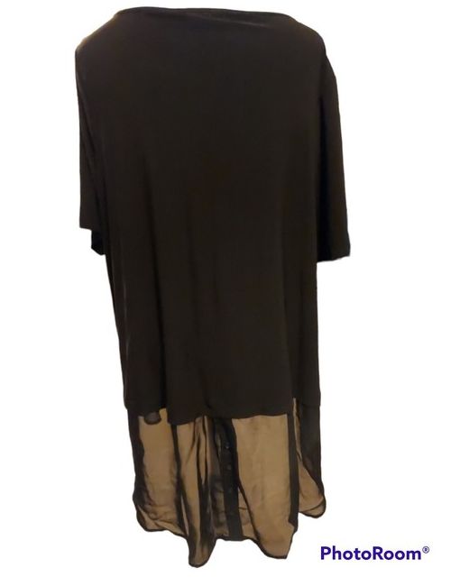 This Gorgeous Nina Leonard Black Long Top is Lovely. The Size is 3XL. It has a sheer panel with buttons at the hem.
