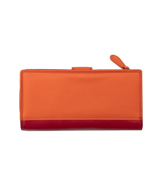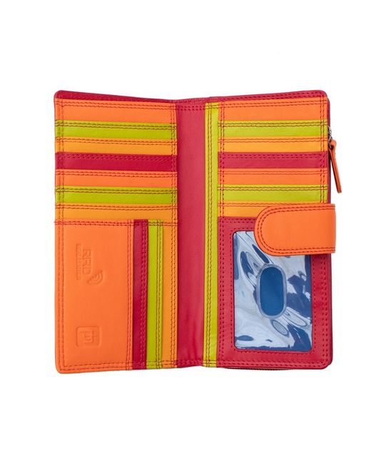 It’s RFID safe too RFID SAFE. RFID Protection. If you thought the exterior of this purse was colourful, wait until you see the inside! Red Multi colour leather purse. Red multi colour purse. 15 Credit card slots, 3 pouch pockets, ID pouch and a note section.