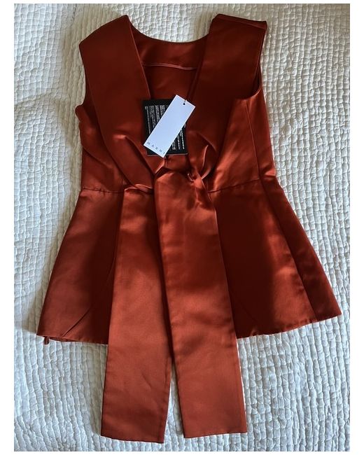 Rare Marni tank top. Gorgeous pumpkin colour and sculptural fabric. Side zip. Plunging v-neck at the back with dramatic tie detail for extra wow. Looks amazing with well-cut navy trousers.