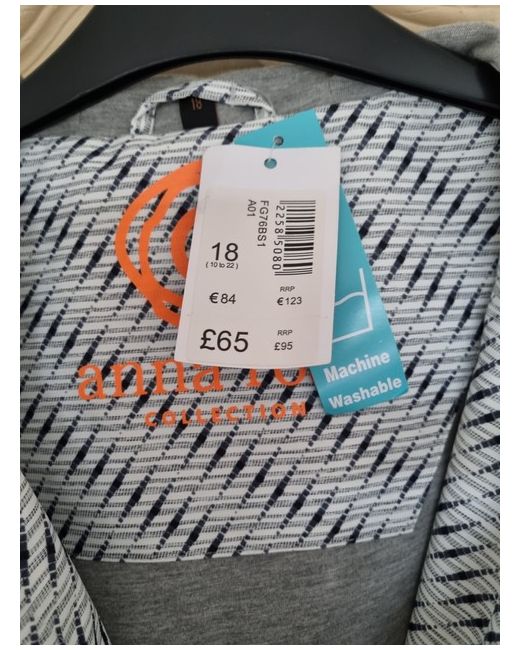 Anna Rose Lightweight Showerproof jacket . Size 18 This is brand new with tags. Still available online at £65 Designed in a lightweight white and grey dash printed fabric, details include piping detailing, harlequin drawcord to the hood, and the back trim all add to the finished look. Fully lined with front pockets and drawcord to the waist that pulls you in for a flattering silhouette.