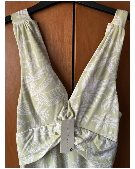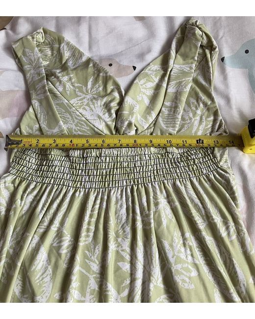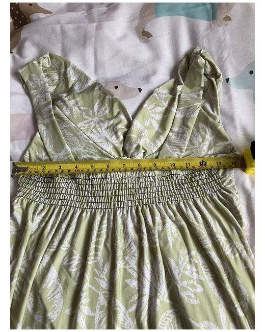 Ladies Jon & Anna Maxi Dress. + Armpit to bottom of dress - 43” 109cm. + Shoulder to bottom of dress - 53” 135cm. Light green with leaf pattern.