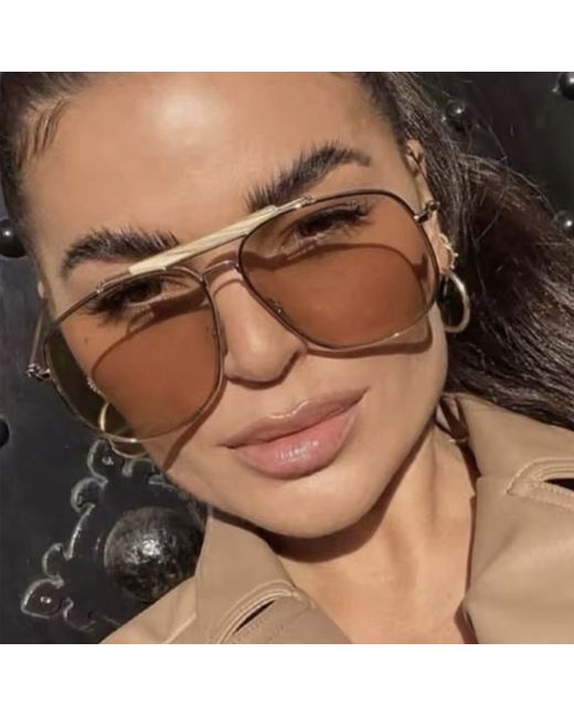 The product is a pair of women's sunglasses with a metal frame from the brand FRAME. The sunglasses feature an oval style with multicoloured lenses and frame, adding a fashionable and trendy touch to any outfit. Perfect for adding a chic accessory to your summer wardrobe, these sunglasses are a stylish choice for any woman looking to elevate her look with a touch of sophistication.
