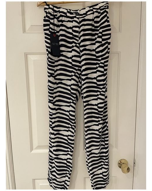 Brand new Armani Jeans trousers in size 40, made of viscose, with a chino style in black and white. They feature a zip/button closure and are suitable for various occasions like travel, casual outings, or workwear. Perfect for women looking for a stylish and comfortable addition to their wardrobe.