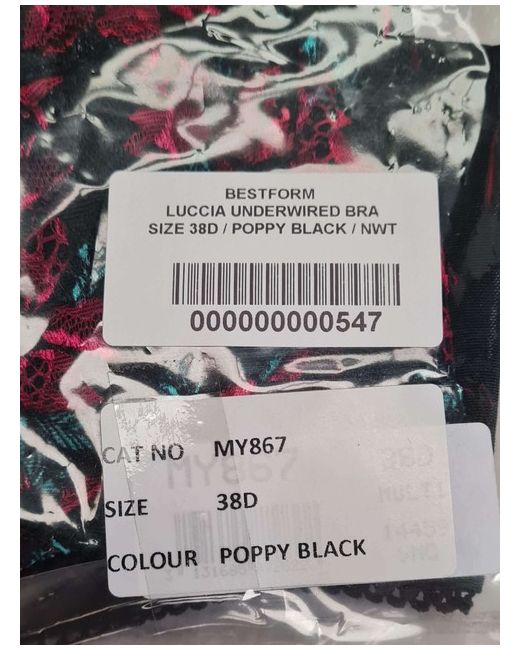 BN black poppy print LUCCIA full cup swing bra 36E NEW