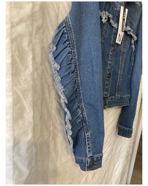This Noisy May ladies denim jacket is a must-have for any fashion-forward woman. Made from a comfortable cotton blend fabric, this short-length jacket features a button closure and frills accents that add a touch of elegance to the overall design. The blue colour is perfect for any season, and the jacket is machine washable for easy care. This jacket is ideal for travel and casual occasions, and it comes in size small with a regular fit. The denim fabric type gives it a classic look that is both stylish and versatile. Made in Bangladesh, this Noisy May jacket is a great addition to any wardrobe.BNWT