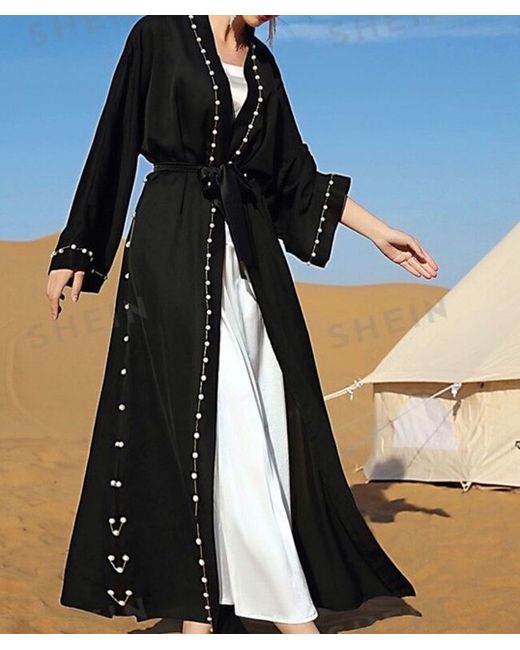 Elevate your style game with this stunning Pearl Abaya Duster Coat. Crafted from a luxurious cashmere blend, this long black coat exudes elegance and sophistication. The regular fit and size L make it perfect for any occasion, be it formal, casual or for workwear. This coat features long sleeves, a kimono style and a beautiful pearl brand logo that adds a touch of glamour to the outfit. Ideal for travel, parties, cocktails and more, this coat is a must-have in every fashion-forward woman's wardrobe. Item will be sent recorded delivery. Please check pics for sizing