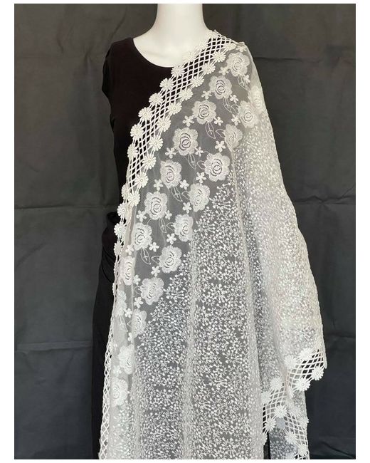 Unique Indian Pakistani Net Lace Embroidered Long Dupatta Scarf