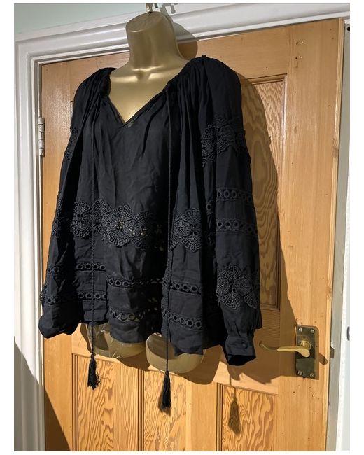 Forever Unique One Size Top Black Embroidered Elasticated Neck Tassel. 28