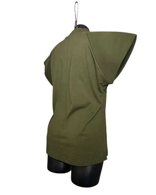 This olive green cotton T shirt is a standout piece that seamlessly blends style and functionality. The raglan padded design create a bold, structured look.