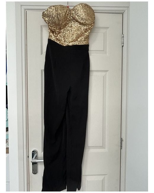 Black BNWT Unique21 Bustier Strapless Playsuit Jumpsuit Gold Sequin Trouser XS/6