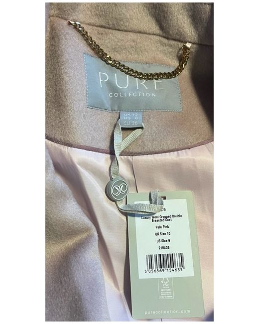 RRP £299 - SOLD OUT SIZE ONLINE. Pure Collection Luxury Wool Cropped Double Breasted Coat in Pale Pink. Style its smart collar and lapels with a roll or turtle neck for a polished finish whether worn open or closed.