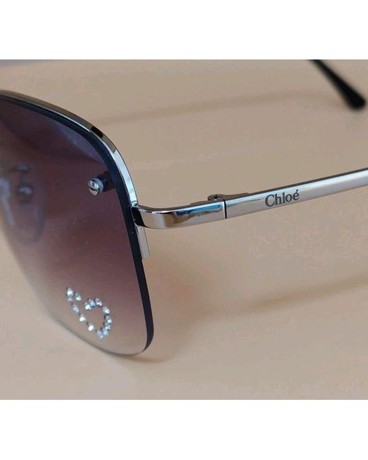 Embrace the blend of sophistication and modernity with these Chloé pilot sunglasses, designed specifically for the fashion-forward woman. The silver metal frame provides a sleek and lightweight feel, ensuring comfort and durability. The gradient blue lenses not only offer a stylish aesthetic but also protect your eyes from harmful UV400 rays. These sunglasses are a perfect fusion of designer eyewear and functional fashion accessory. Rimless and lightweight, they are ideal for those seeking both style and practicality. The timeless pilot style complements various outfits, making it an essential piece for any chic wardrobe.