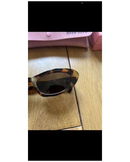 The Miu Miu sunglasses for women exude a stylish and sophisticated vibe with their cat eye design and multicoloured gradient lenses. The UV400 protection ensures your eyes are shielded from harmful rays, while the brown frame adds a touch of elegance. Perfect for adding a chic accessory to any outfit, these sunglasses by Miu Miu are a must-have for fashion-forward women looking to elevate their style.