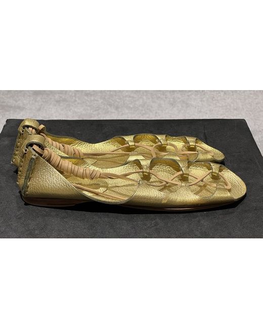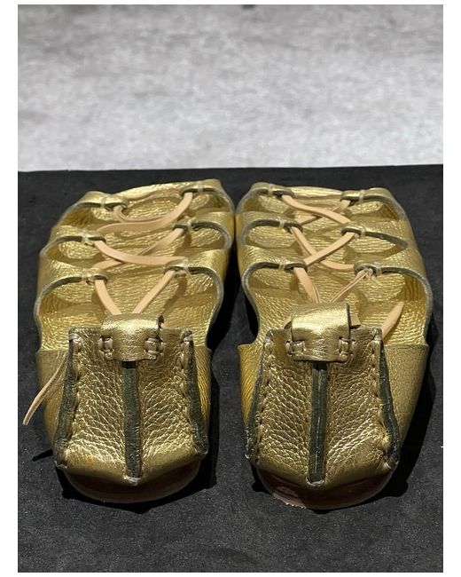 Step into the season with these chic Miu Miu Gladiator Sandals, the perfect blend of comfort and style for your casual outings. With a versatile gold hue, these sandals are crafted from premium leather, featuring a lace-up closure that ensures a secure and personalised fit.