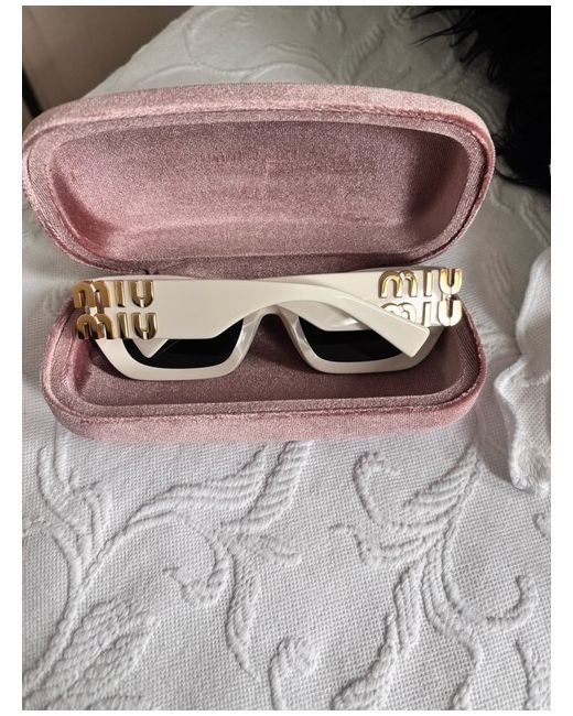 The Miu Miu SMU09W sunglasses, also known as the “Miu Glimpse” model, are available in a white frame with dark grey lenses. This combination offers a striking contrast, enhancing the bold design of the sunglasses. Sold at Sunglasses Hut and Maverick & Wolf Miu Miu MU 09WS Runway model with a white frame and grey lenses. This model features a 53 mm lens size and a 22 mm bridge width. All accessories are brand new and clean except the box is slightly stained RRP- £340