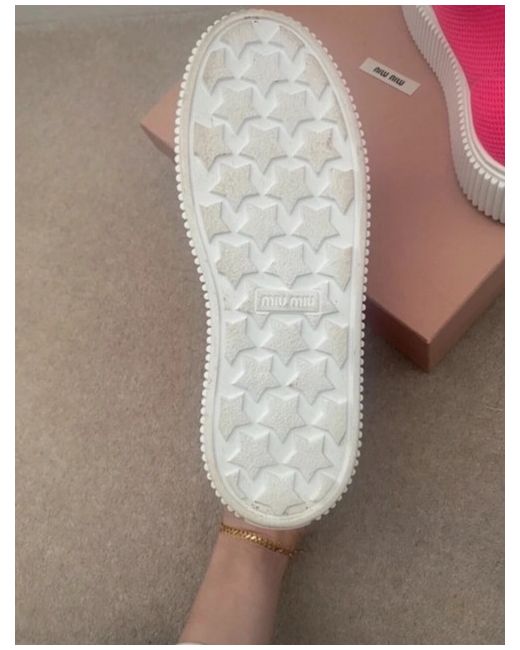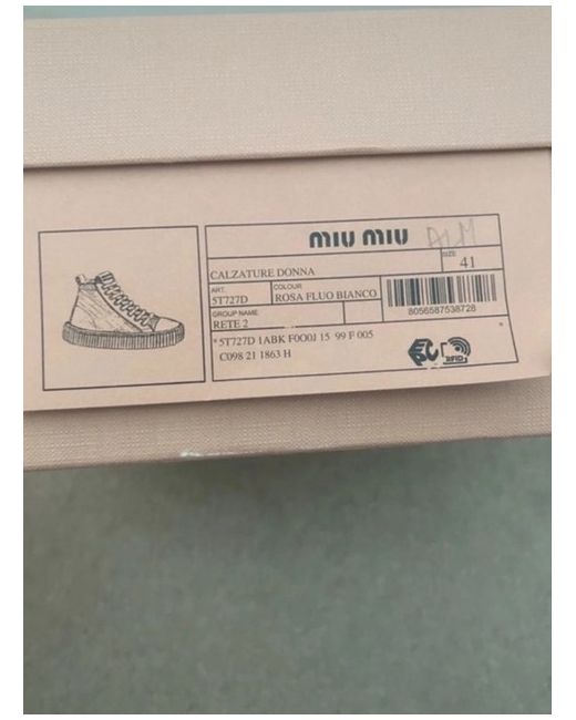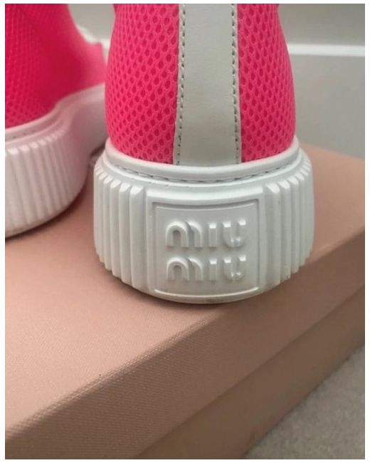 These are a pair of stylish Miu Miu trainers in a vibrant pink colour. They are a UK size 8, designed for women. The trainers are a modern sneaker style with no customization. Perfect for adding a pop of colour to any outfit, these Miu Miu trainers are a trendy choice for fashion-forward women looking for a statement footwear option.