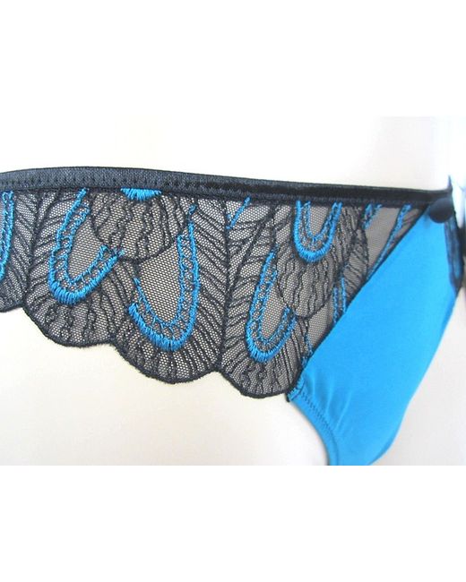 Gorgeous Implicite thong in teal/black colour. Implicite is luxury French lingerie by Simone Perele. 61% polyamide, 21% cotton, 14% elastane, 4% polyester.
