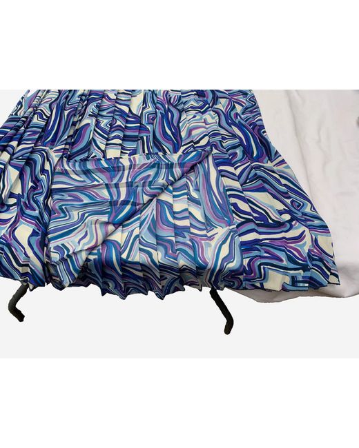Women's Blue New Ladies Mix Pleated Front Split Elasticated Skirt UK 12/14