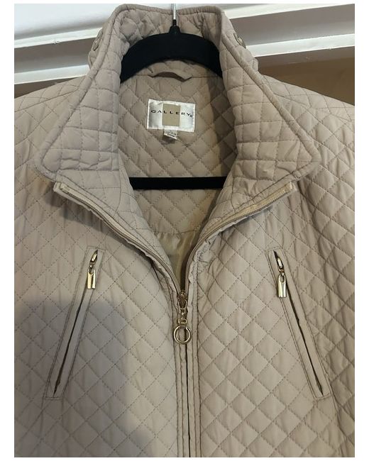 Lovely style quilted beige jacket size large comes up smaller would say fit a 14-16 . With pockets. No hood . Any questions please ask . Thank you .