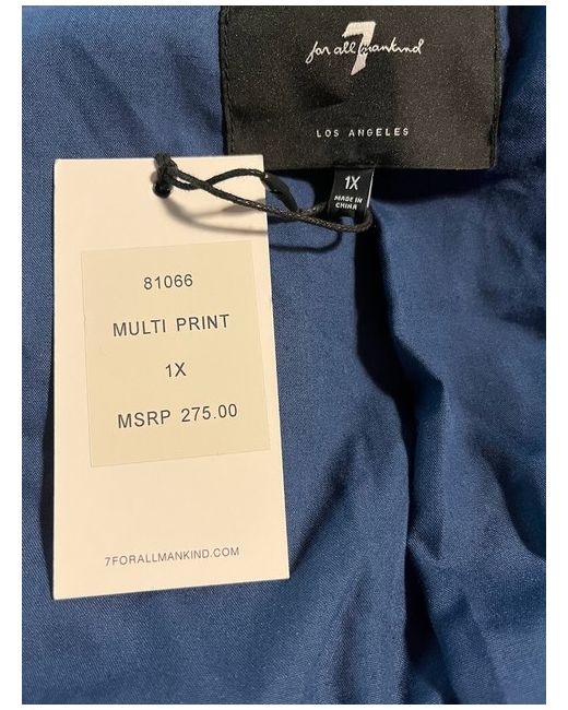 7 For All Mankind Patchwork Coat in Multi Print. Floral patchwork pattern. Size : 1X - large. Lining : 80% Polyester / 20% Cotton. Fill : 100% Polyester. Shell : 100% Cotton. Two pockets. Collar to hem : 45".