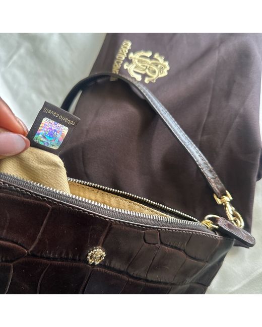 Roberto Cavalli brown leather clutch bag with detachable strap. Comes with original dust bag and tag. In excellent conditions barely worn. #luxuryhandbag #designer #luxury #harrods #fashion