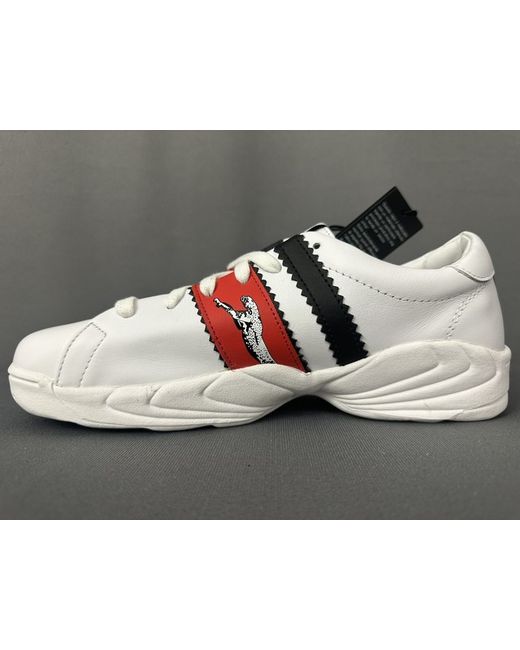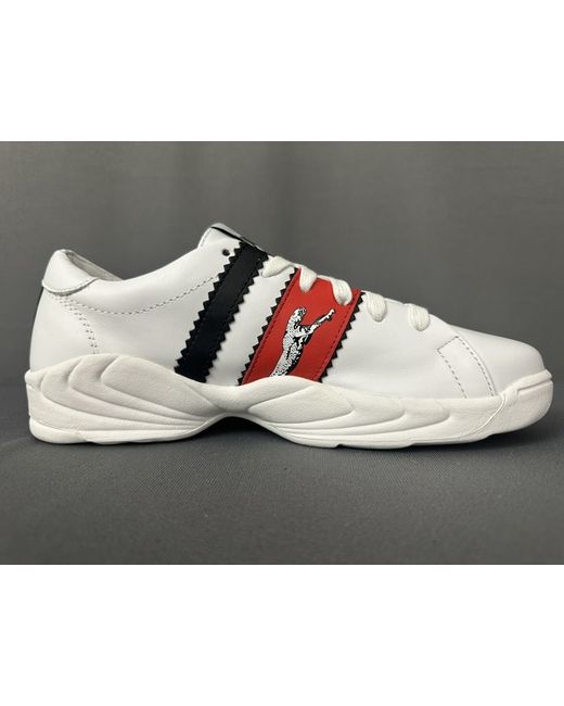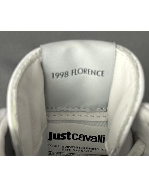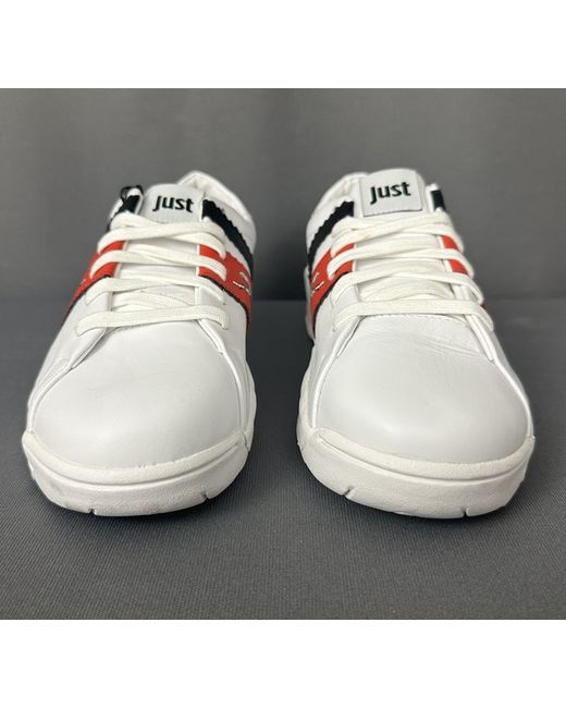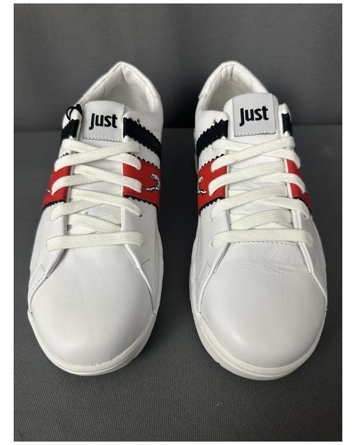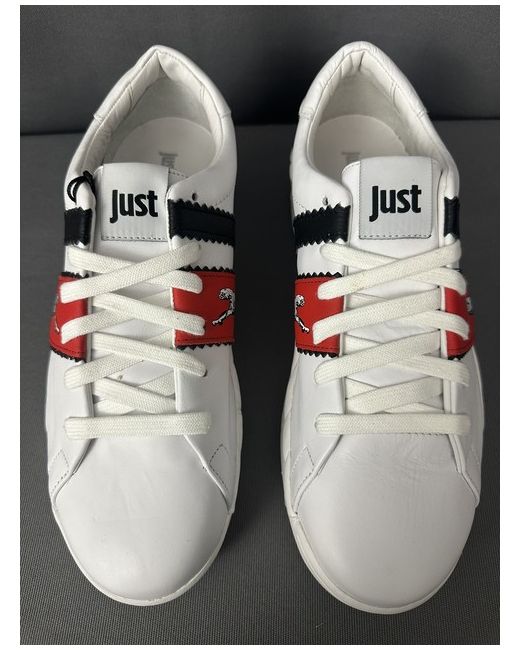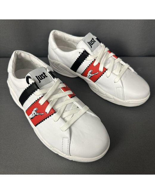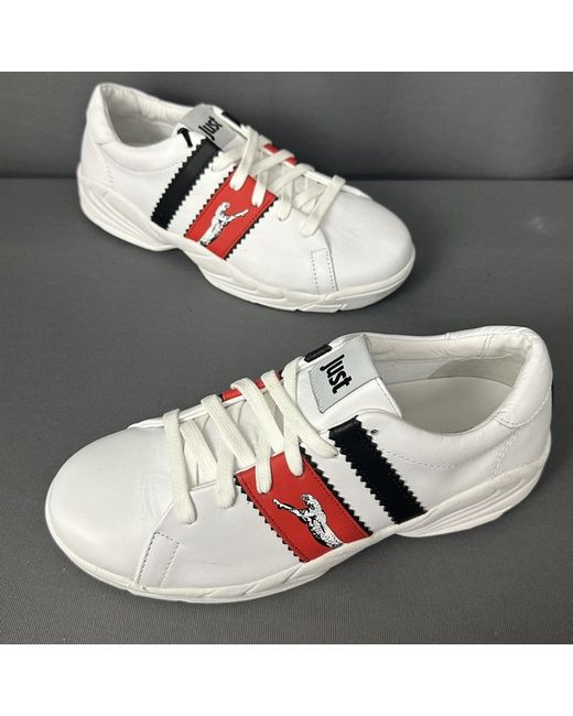 ROBERTO CAVALLI. Labelled Size EU 41 - US 8.5 - JPN 26.5. Red and Black Stripes complete with Big Cat graphic.