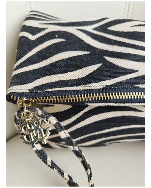 Roberto cavalli designer zebra pattern canvas clutch/makeup bag, new.