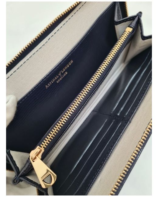 New Aspinal Continental Wallet. Colour: Midnight Blue Silk. 19 x 10 cm. External slip pocket.