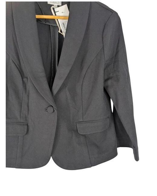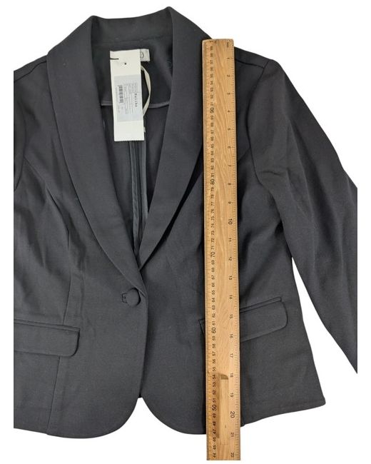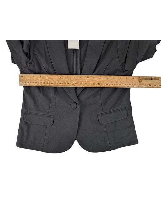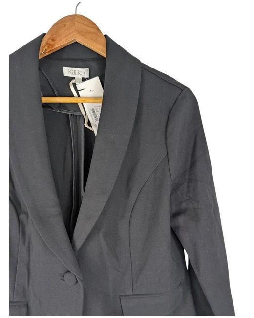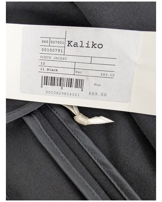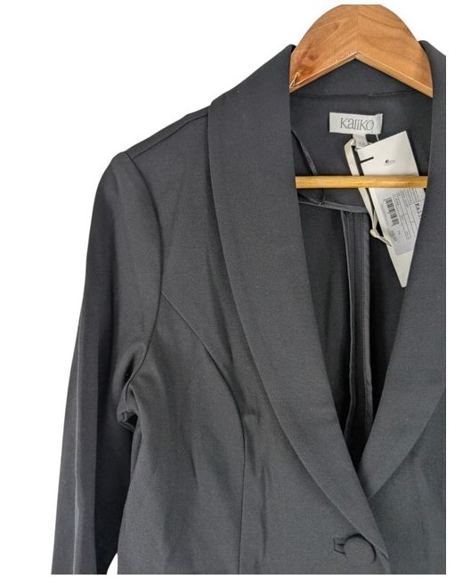 Kaliko Ponte Jacket in black, UK size 12. This cropped blazer features 3/4 sleeves with a single button closure. Made of polyester with a lining for comfort. The jacket has stretch for a comfortable fit and is suitable for parties, formal occasions, work, or business wear. The design includes button accents, making it a versatile piece for weddings, parties, or everyday wear in all seasons.
