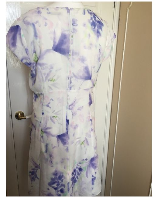 KALIKO Size 16 White/ Purple/ Green Patterned Lined Dress NEW. Lots of detailed tailoring Smocked shoulders Part pleated front V neck Zipped back