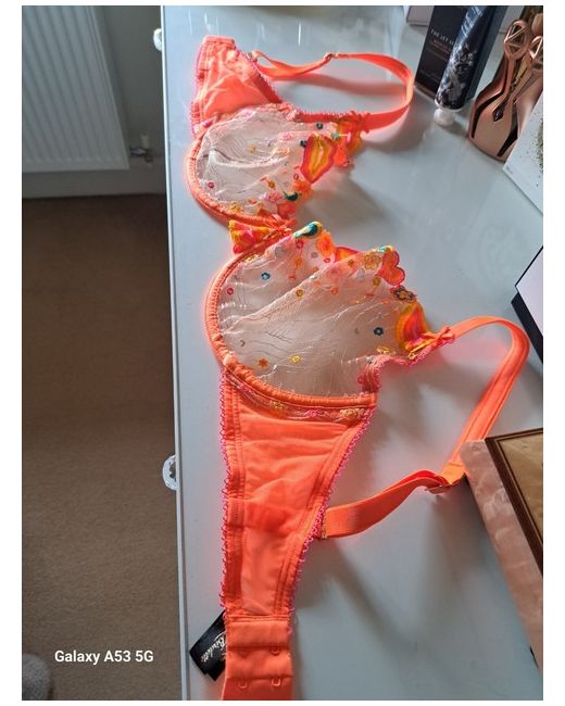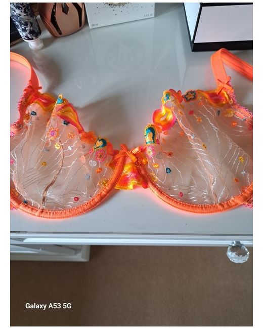 Elevate your lingerie collection with this stunning Honey Birdette Dixie Orange Bra in size 34F. The beautiful balcony style and vibrant orange colour make this bra a standout piece. Made for women, this bra is perfect for adding a pop of colour to your outfit while providing comfort and support. Crafted by the renowned brand Honey Birdette, this bra is made to the highest quality standards. It is perfect for any occasion, whether you're dressing up for a night out or simply looking for a comfortable bra for everyday wear. Add this bra to your collection today and experience the perfect combination of style and comfort.