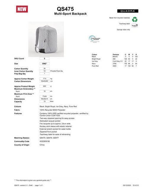 Pursuit Backpack Ideal for school sport or leisure. 16l