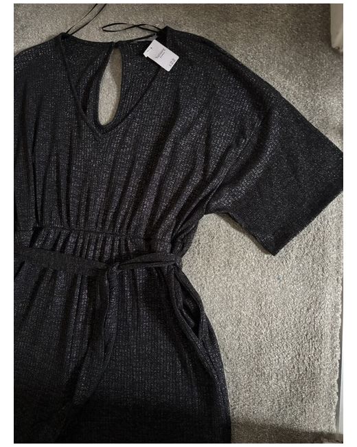 This Nutmeg jumpsuit in size 18 for women features a stylish black design with silver specs. It is a one-piece garment with a jumpsuit style, suitable for various occasions.