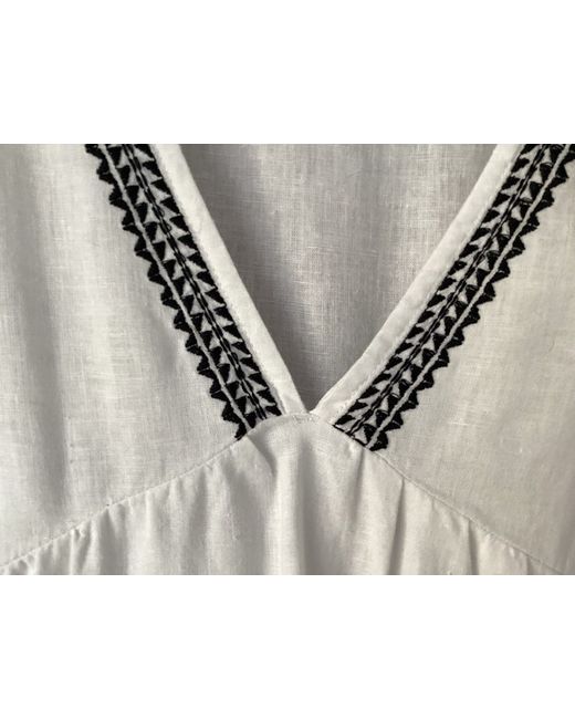 White with black embroidery v neck linen blend top in a size 16.