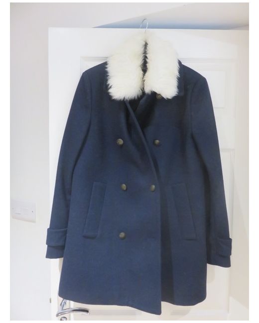 Limited edition Marks and Spencer's beautiful warm short military style navy blue coat. In excellent condition. Regular size 8 fit. Features a fake faux white collar trim and detailed buttons. Fully lined for maximum warmth and comfort.