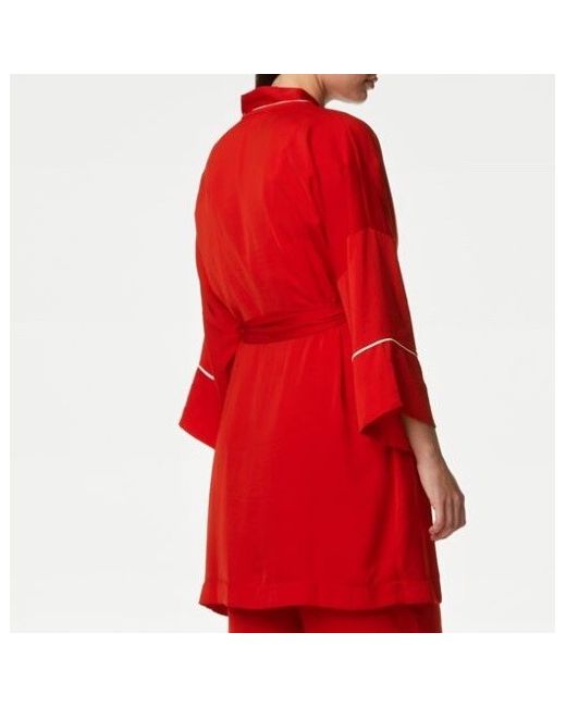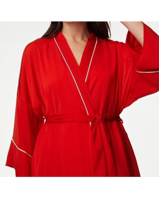 Indulge in luxurious comfort with this stunning red dressing gown from Marks & Spencer. Designed in a beautiful kimono style with a tie closure, this gown is perfect for women who love to feel stylish and elegant while relaxing at home. The lightweight polyester material makes it ideal for wear in any season, whether it's autumn, winter or spring. The gown features a belted waist that cinches in at the waist, creating a flattering silhouette. The deep red colour adds a touch of sophistication, while the Spencers brand ensures the highest quality. This dressing gown is the perfect addition to any woman's nightwear collection.