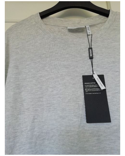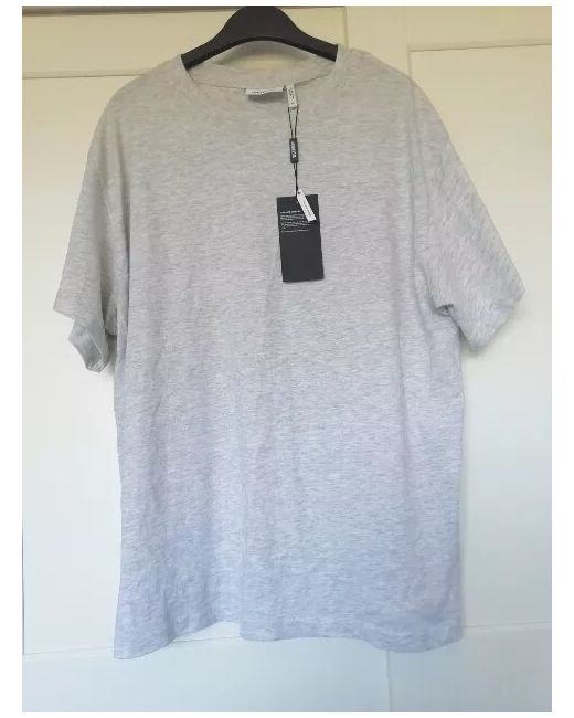 Easy everyday mottled grey t shirt, not see through but nice and lightweight, easy to put on under dungarees etc, size XL which is about a 16. Organic cotton